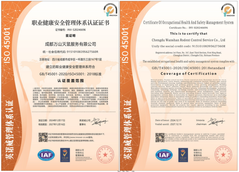 职业健康安全管理体系认证证书